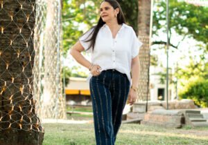 650/0089 Blusa en Lino y algodón con brillos